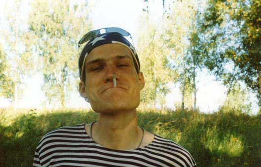 А вот так выглядит тичный Миха: в тельнике, бандане и с самокруткой во рту. :-)
