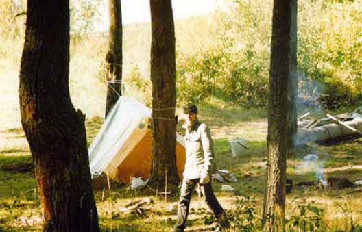 Мишка на фоне своей палатки.