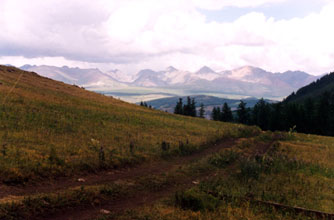 Фото. После крутого подъема (перепад 400м) дорога выходит на луг.