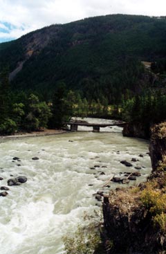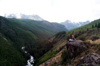 поток Чуи, выкрашенный в молочно серебристо-зеленый цвет, как будто застыл на месте (здесь нет порогов, и