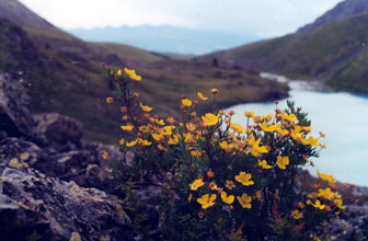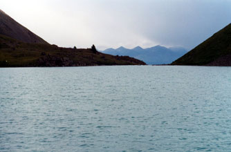 бирюзового цвета, образованное в падине между впадающей речкой и вытекающей.