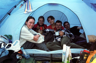 Все забрались в палатку. В ней уютно,